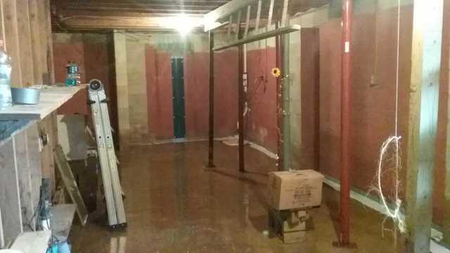 The WaterGuard system is installed inside the basement along the perimeter to effectively capture wall and floor seepage before it reaches the basement floor. Water enters the system via inlet holes and flows through the drainage pipe to the sump pump.